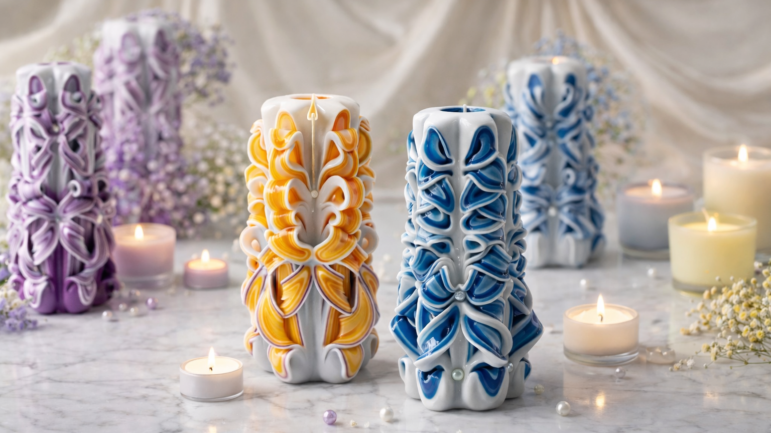 Azure Swan Ribbons – Hand-Carved Luxury Candle