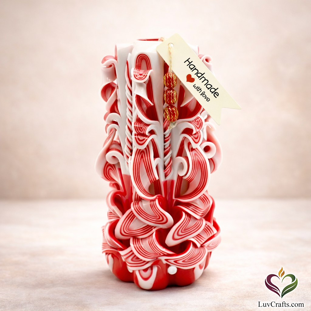 Candy Cane Red Ribbons – Hand-Carved Luxury Candle