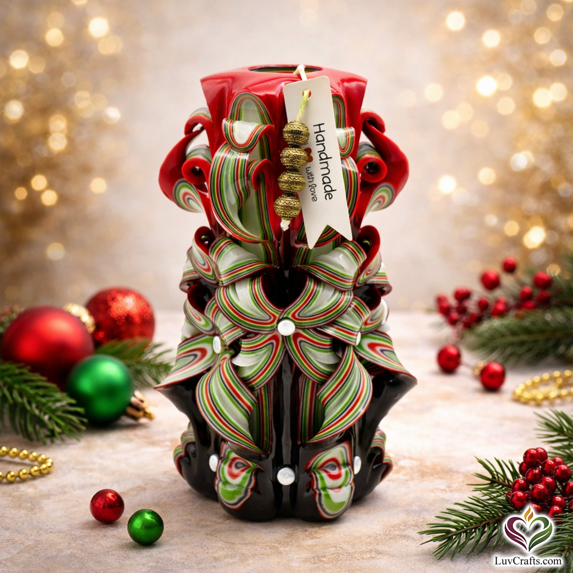 Crimson Red Ribbons is part of the LuvCrafts Hand-Carved Sculptural Series — a color-driven collection where each candle expresses movement, contrast, and individuality.